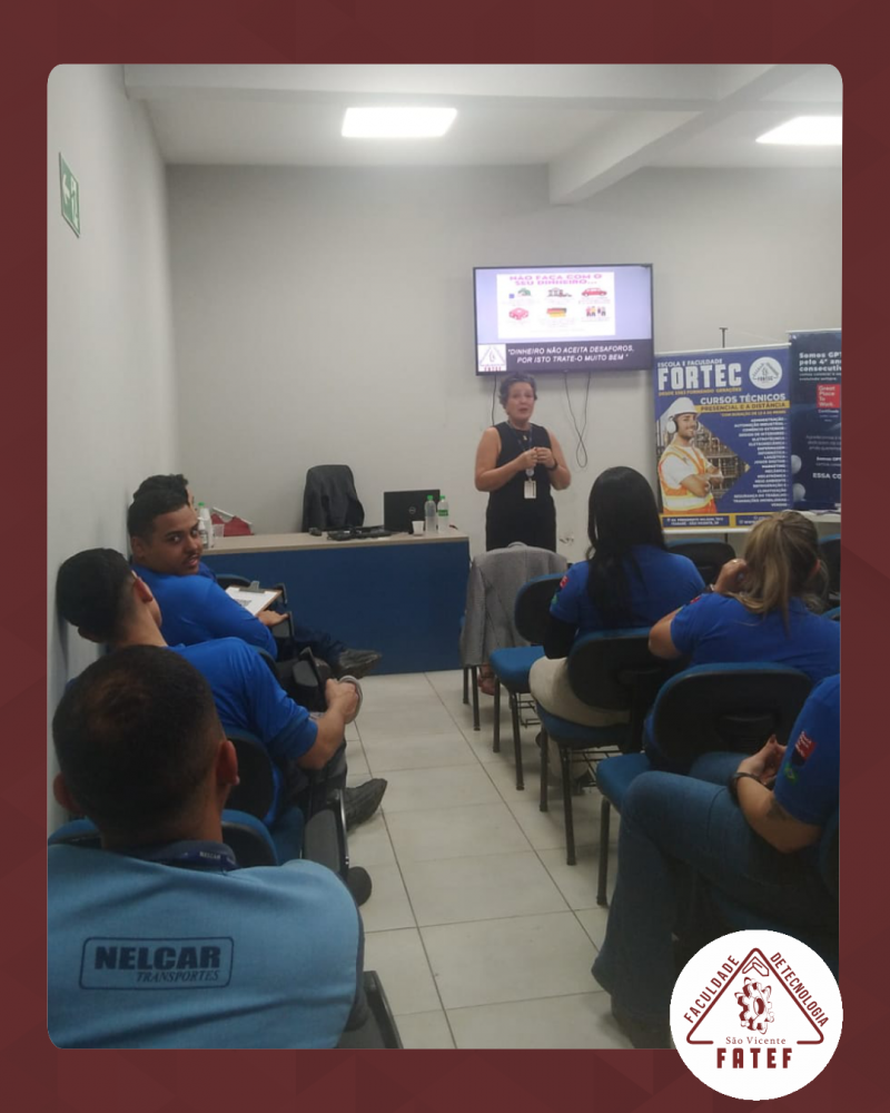 A Fatef realizou uma palestra especial sobre Educação Financeira na empresa de transportes Nelcar — parceira da instituição, proferida pela professora Rita.